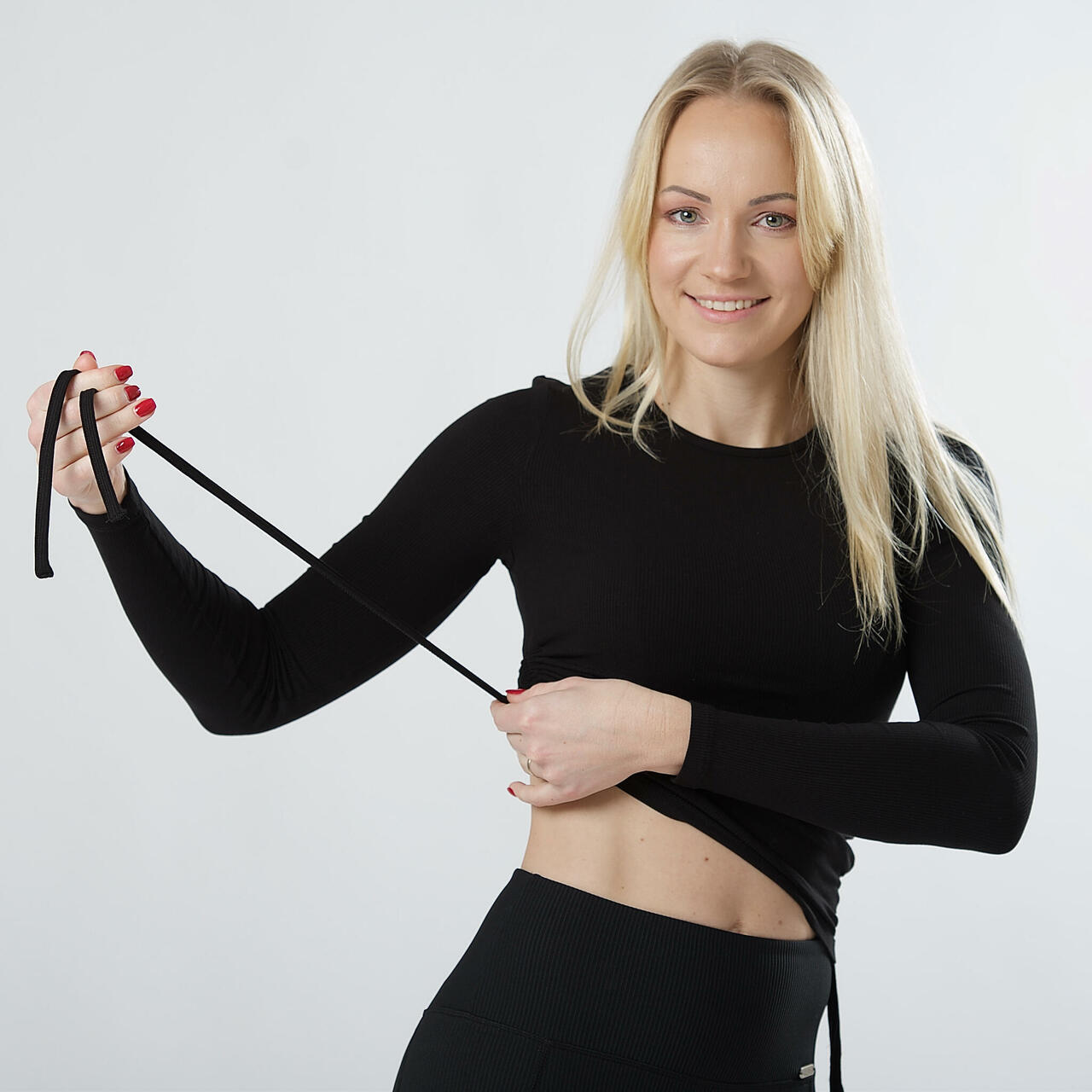 Chic pikkade varrukatega pluus on õhukesest, väga pehmest ja venivast materjalist. Pluus on piisavalt pikk, et katab naba ka käed üles tõstes. Pluusi külgedel on paelad, mille abil saab pluusi muuta just nii lühikeseks, kui Sa ise soovid. Paelad saab siduda lipsukesteks või lihtsalt rippuma jätta - just nii nagu Sulle meeldib. Pluusil on väga väike logo selja ülaosas, mis jätab lihtsa ja stiilse mulje. Seda pluusi on kerge sobitada nii pikkade kui ka lühikeste retuusidega või muude vabaaja riietega - ei pea vaid trennis kandma ;).