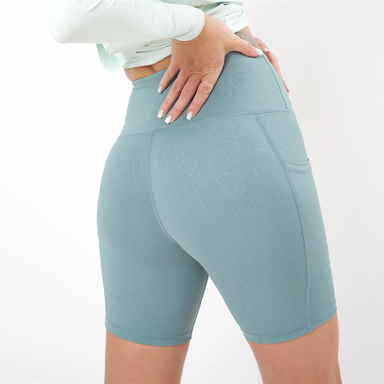 Uskumatult pehmed ja venivad biker shortsid õrna lehesoone mustriga. Kõrge kõhtu lamendav vöökoht toetab sind igal treeningul ja ei lase retuusidel alla vajuda. Püksid on 100% squat-proof ja ei paista läbi. Suured taskud mõlema külje peal hoiavad Sinu väärtuslikke esemeid samal ajal, kui Sina ringi liigud.